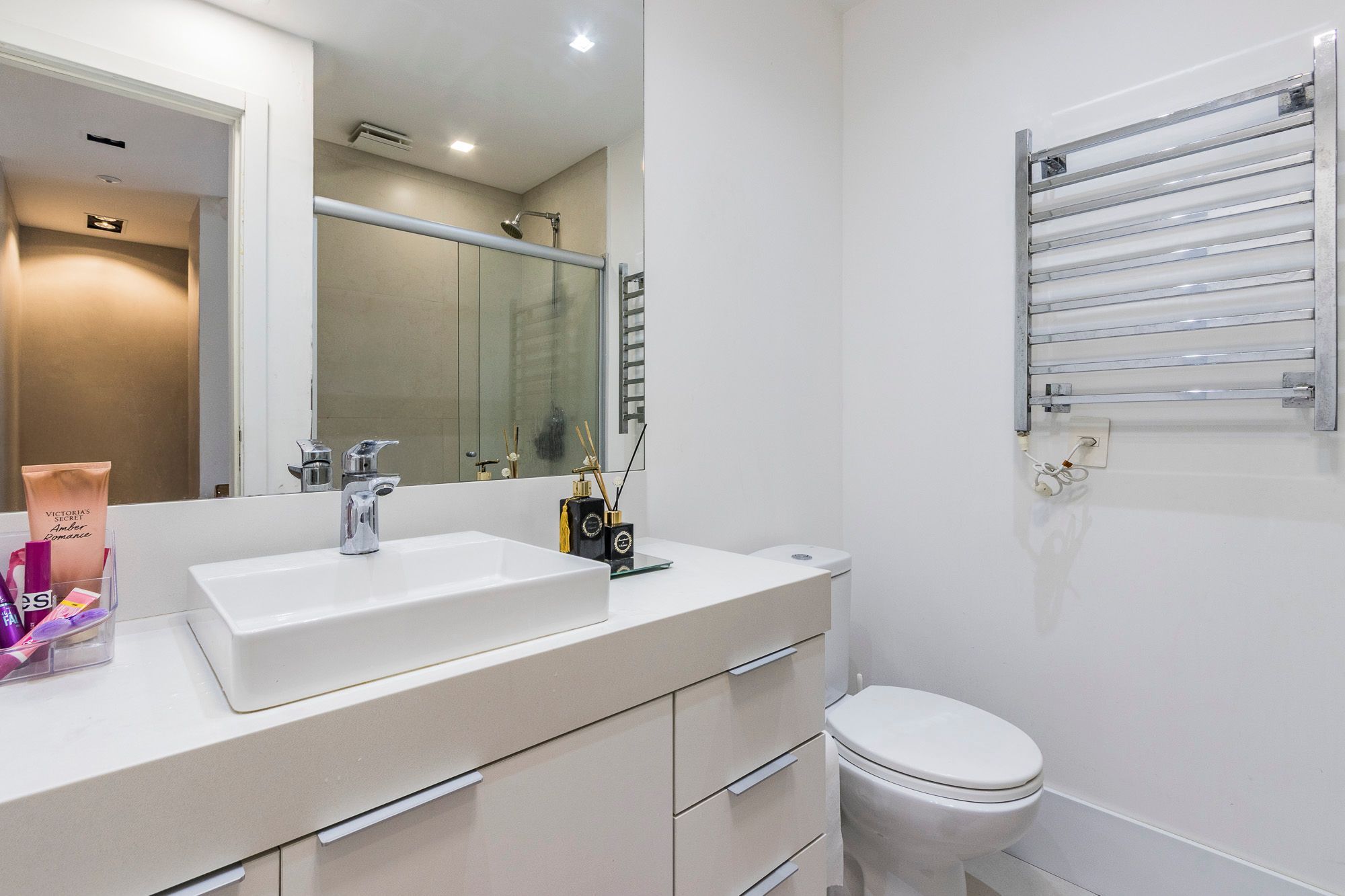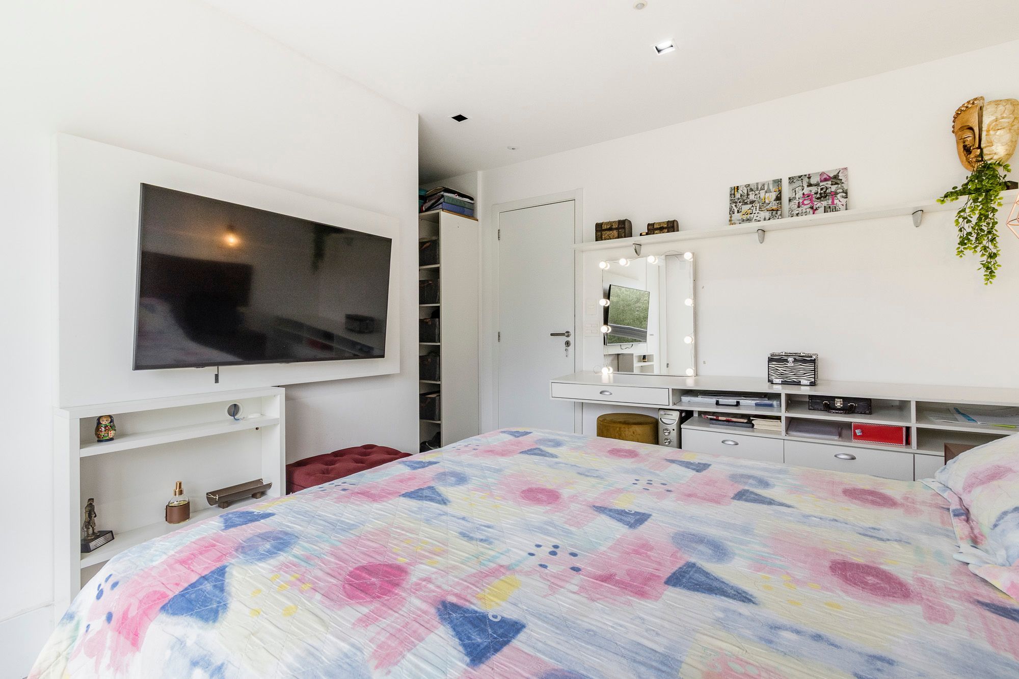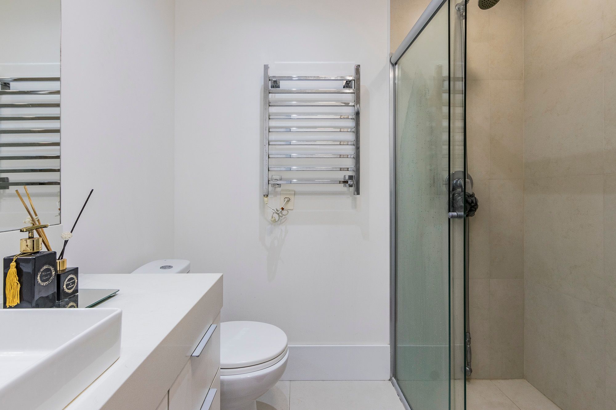Conta ainda com persianas automatizadas nos dormitórios, automação de luzes, fechadura biométrica e infraestrutura elétrica pronta para jacuzzi.
