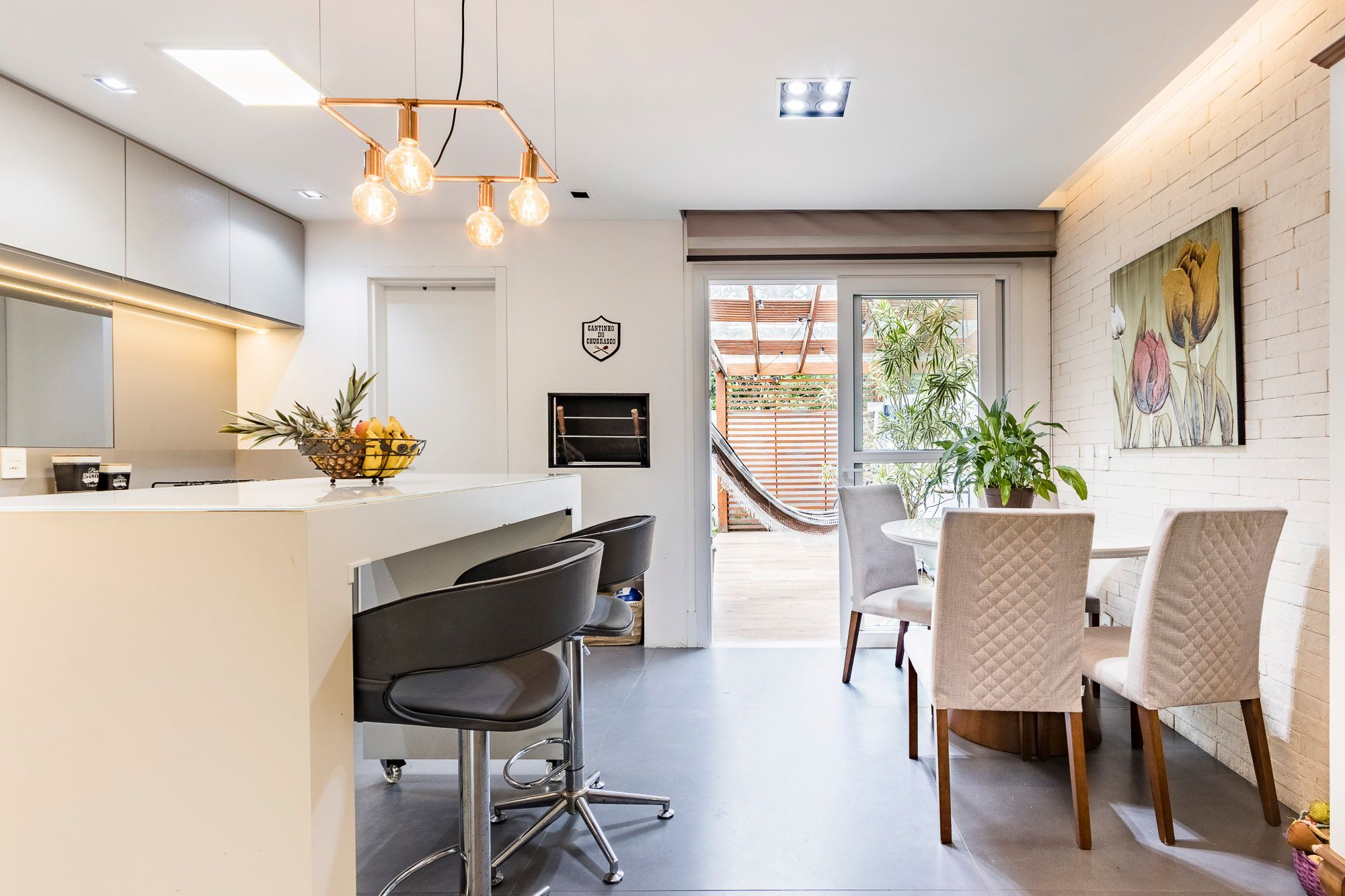 O pátio privativo, com pergolado e gramado, é perfeito para receber amigos e aproveitar momentos ao ar livre.