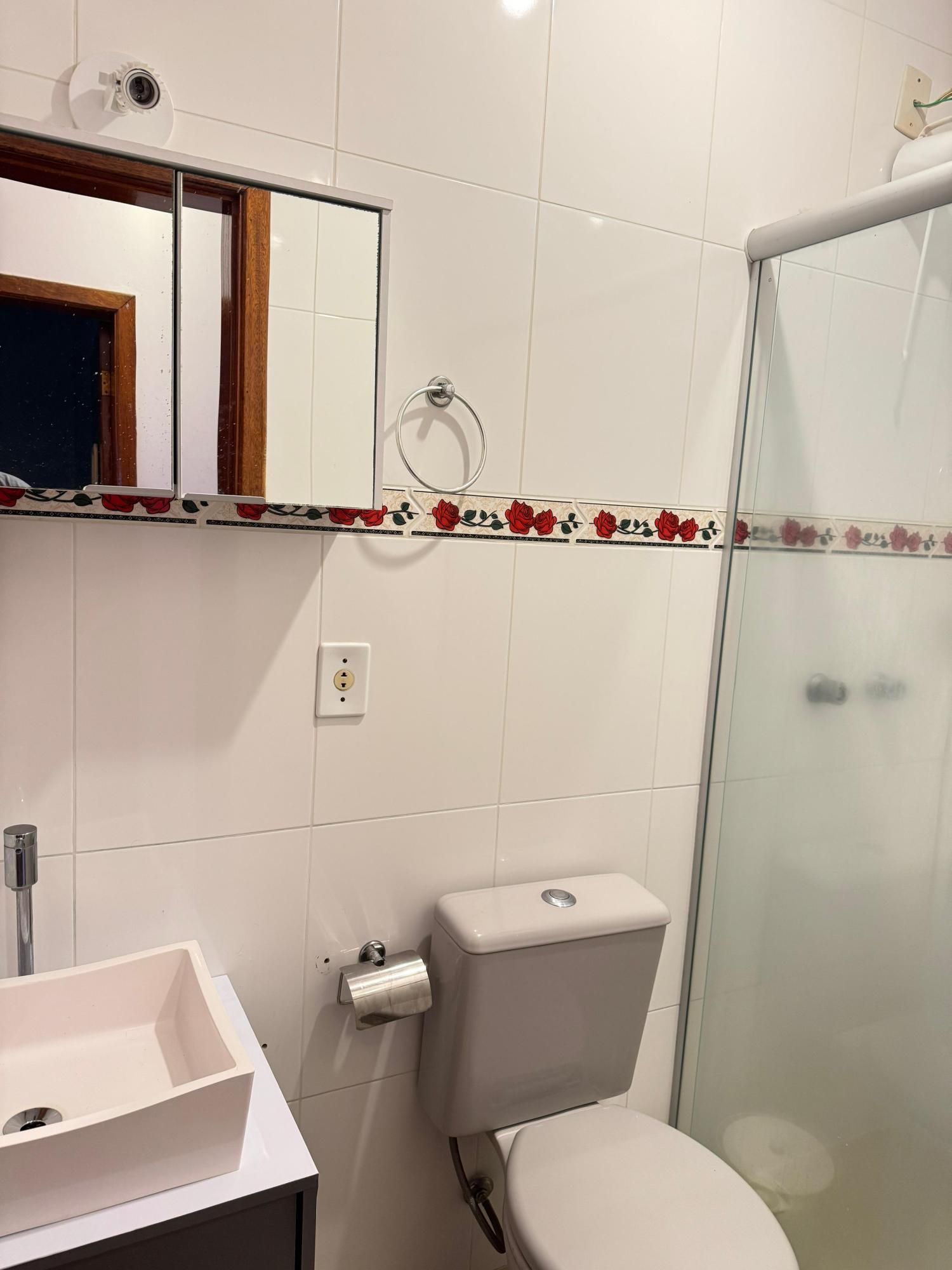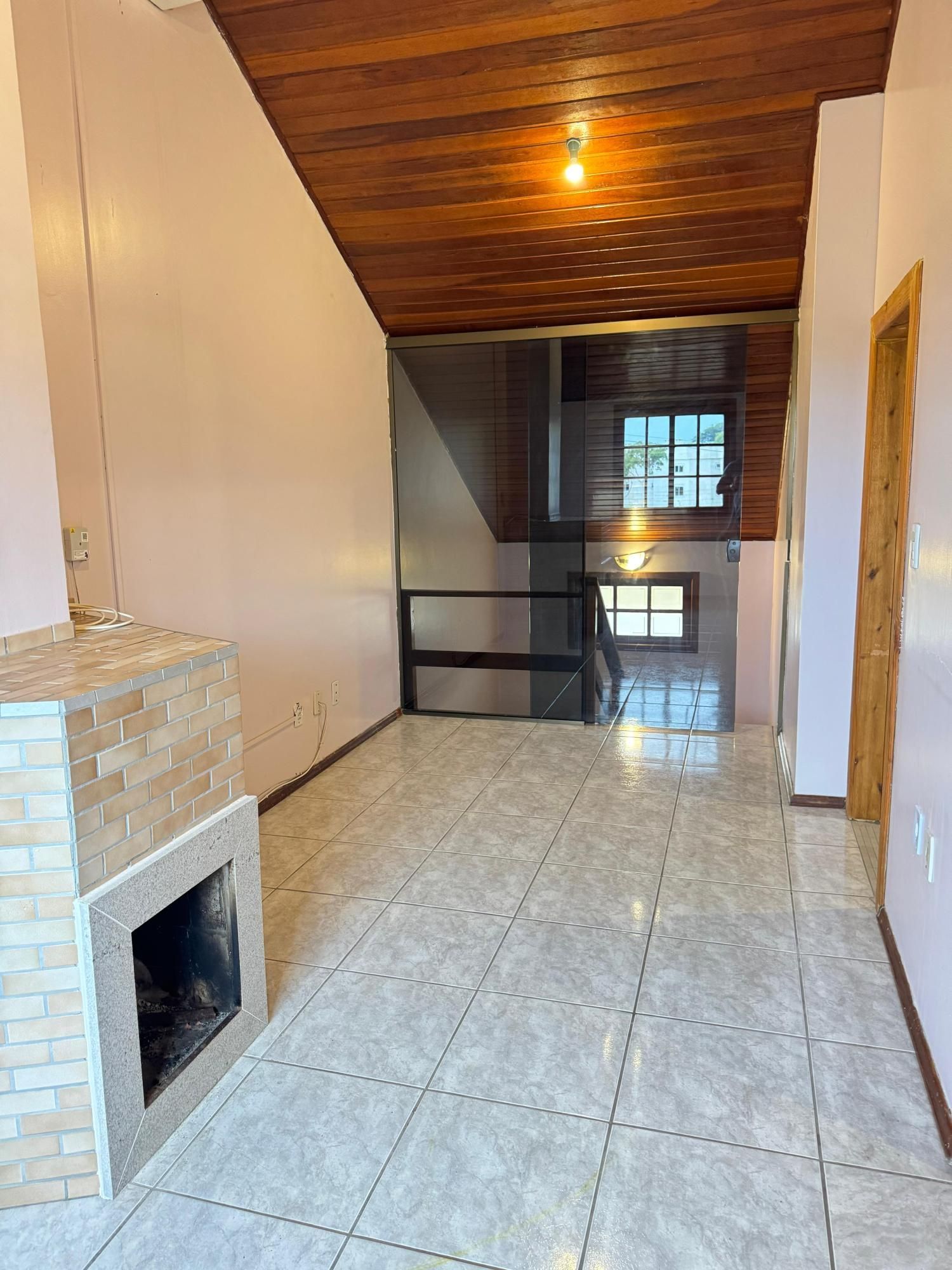 Casa em condomínio, composta de 3 dormitórios, sendo na parte inferior living 2 ambientes, com lareira e lavabo, cozinha e área de serviço e pátio. Andar superior 1 suíte e mais dois dormitórios com sacada, mais um banheiro auxiliar, espaçoso sótão com churrasqueira, vaga de garagem coberta. Condomínio com circuito de câmera, controle remoto, gradil, piscina, salão de festas.
