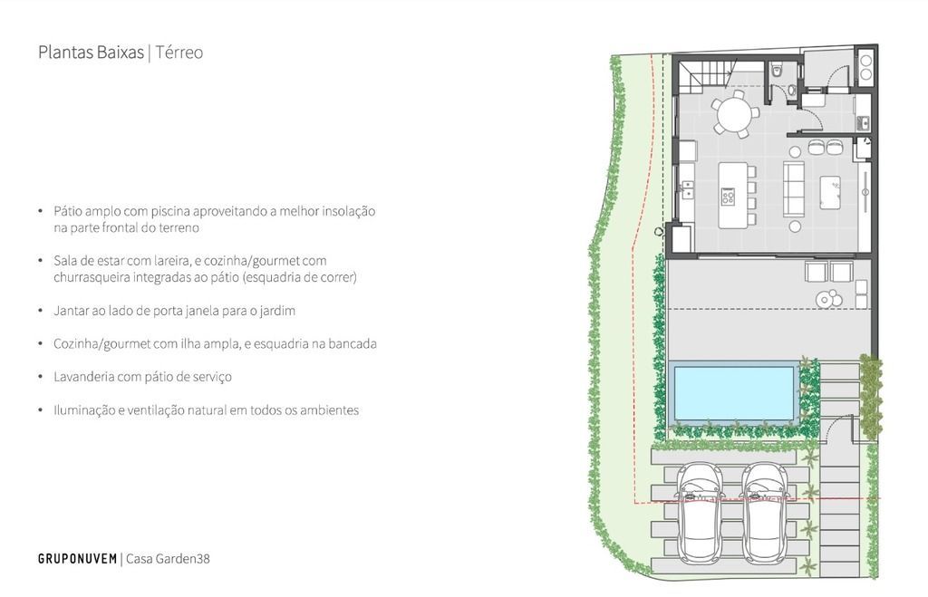 Espetacular Sobrado de Esquina em Condomínio Fechado - Entrega Prevista para Agosto de 2025. Este sobrado de arquitetura moderna e conceito aberto foi projetado para oferecer conforto e sofisticação para toda a família. A Casa Garden 38, inspirada no estilo uruguaio, combina espaços amplos e uma excelente incidência de luz natural, e, materiais nobres, priorizando a qualidade de vida. No térreo, um amplo living integrado à cozinha com espaço para ilha, lareira e churrasqueira proporciona um ambiente perfeito para receber. Há ainda um lavabo e uma área externa exclusiva com piscina, ideal para momentos de lazer. No andar superior, a casa conta com 3 suítes, sendo a suíte master com espaço para closet, enquanto as outras duas possuem o moderno conceito de suíte americana. Diferenciais: Terreno de esquina. Medidas melhores do que os demais terrenos do condomínio. Insolação privilegiada. Pátio amplo com piscina aproveitando a melhor insolação na parte frontal do terreno. Sala de estar com lareira, e cozinha/gourmet com churrasqueira integrada ao pátio (esquadria de correr). Jantar ao lado de porta janela para o jardim. Cozinha/gourmet com ilha ampla, e esquadria na bancada. Lavanderia com pátio de serviço. Iluminação e ventilação natural em todos os ambientes. Suíte principal de 19,40m² com closet e vista para o pátio. Esquadria de peitoril baixo na suíte principal. Suítes americanas para cama de casal. Lavatório duplo para as suítes americanas. Localização privilegiada: Condomínio Campos do Conde, Zona Norte de Porto Alegre/RS, próximo ao Shopping Iguatemi, Parque Germânia e Avenida do Forte. Uma oportunidade única de morar com estilo, conforto e segurança em uma das melhores regiões da cidade. Descubra a qualidade de vida inigualável ao viver no condomínio de casas dos seus sonhos, como o Campos do Conde em Porto Alegre. Prepare-se para desfrutar de uma vida repleta de vantagens exclusivas: Segurança tranquila: Em um mundo onde a segurança é uma prioridade, morar em um condomínio é uma escolha inteligente. Com portaria 24 horas, sistemas de vigilância e segurança privada, você desfrutará de uma sensação de proteção e tranquilidade constante. Infraestrutura e lazer deslumbrantes: Imagine-se dando longas caminhadas ao ar livre, lendo um livro à sombra de uma árvore majestosa ou permitindo que as crianças corram e brinquem livremente em espaços verdes e praças privativas. A infraestrutura e as opções de lazer proporcionam momentos de relaxamento e diversão para toda a família. Localização privilegiada: Seja próximo a serviços essenciais, comércios vibrantes, escolas renomadas ou imerso na beleza da natureza, você sempre encontrará vantagens cativantes. Escolha o ambiente que melhor se adapta às suas necessidades e desejos de estilo de vida. Vizinhos como amigos: Viver em um condomínio é a chance de estabelecer laços sociais significativos. Desfrute de um convívio próximo com vizinhos amigáveis, compartilhando experiências, criando amizades duradouras e desenvolvendo uma verdadeira sensação de comunidade. Custos compartilhados, benefícios ampliados: Ao escolher morar em um condomínio, você compartilhará os custos associados, como taxas condominiais, serviços de manutenção e segurança. Essa divisão torna as obrigações mais leves, permitindo que você aproveite ao máximo as comodidades e vantagens oferecidas. Descubra uma vida extraordinária no condomínio de casas Campos do Conde em Porto Alegre. Viva rodeado de beleza, conforto e segurança, desfrutando de uma comunidade acolhedora e das melhores experiências que a vida em condomínio tem a oferecer. Preço e disponibilidade do imóvel sujeitos a alteração sem aviso prévio.