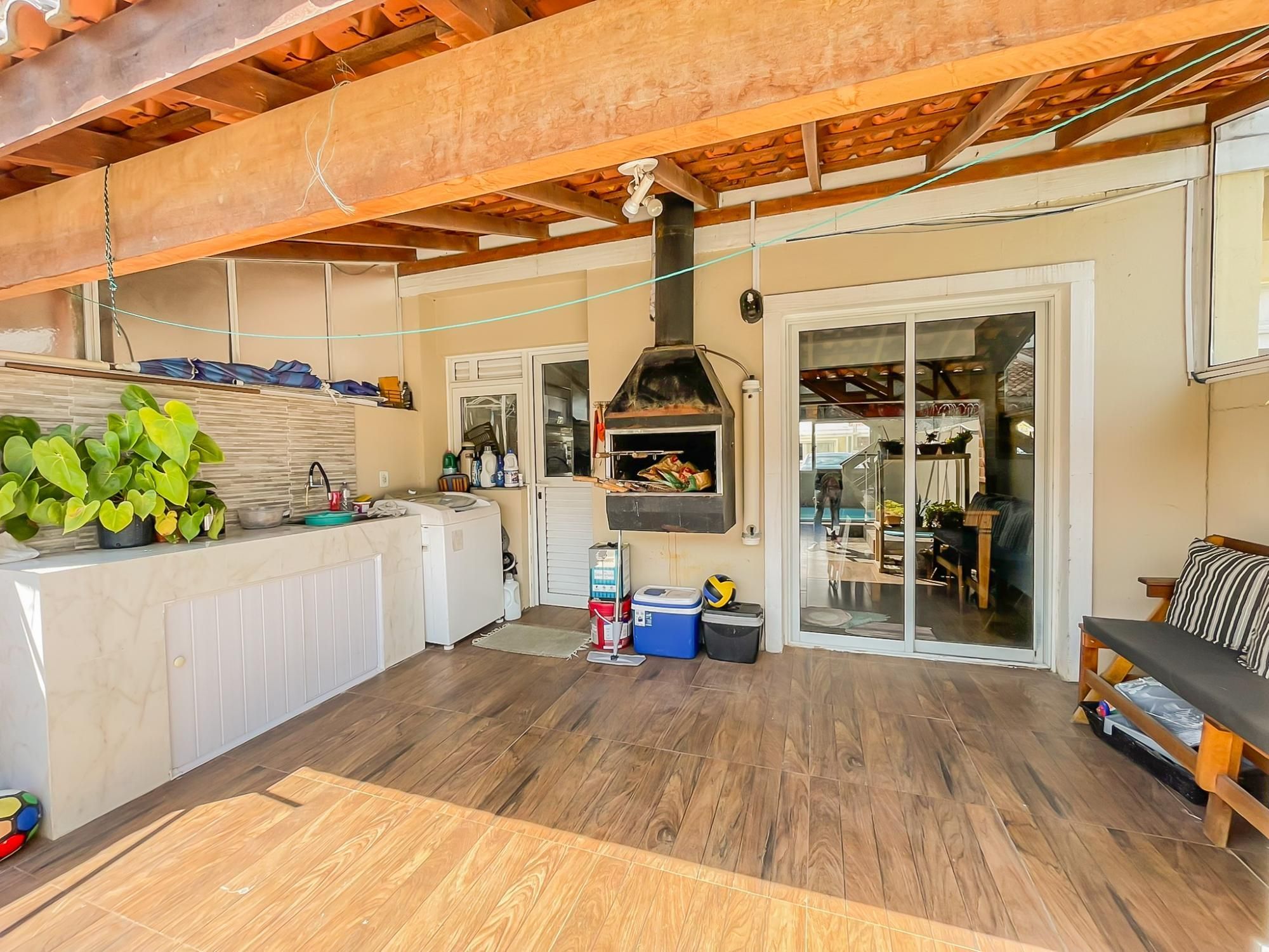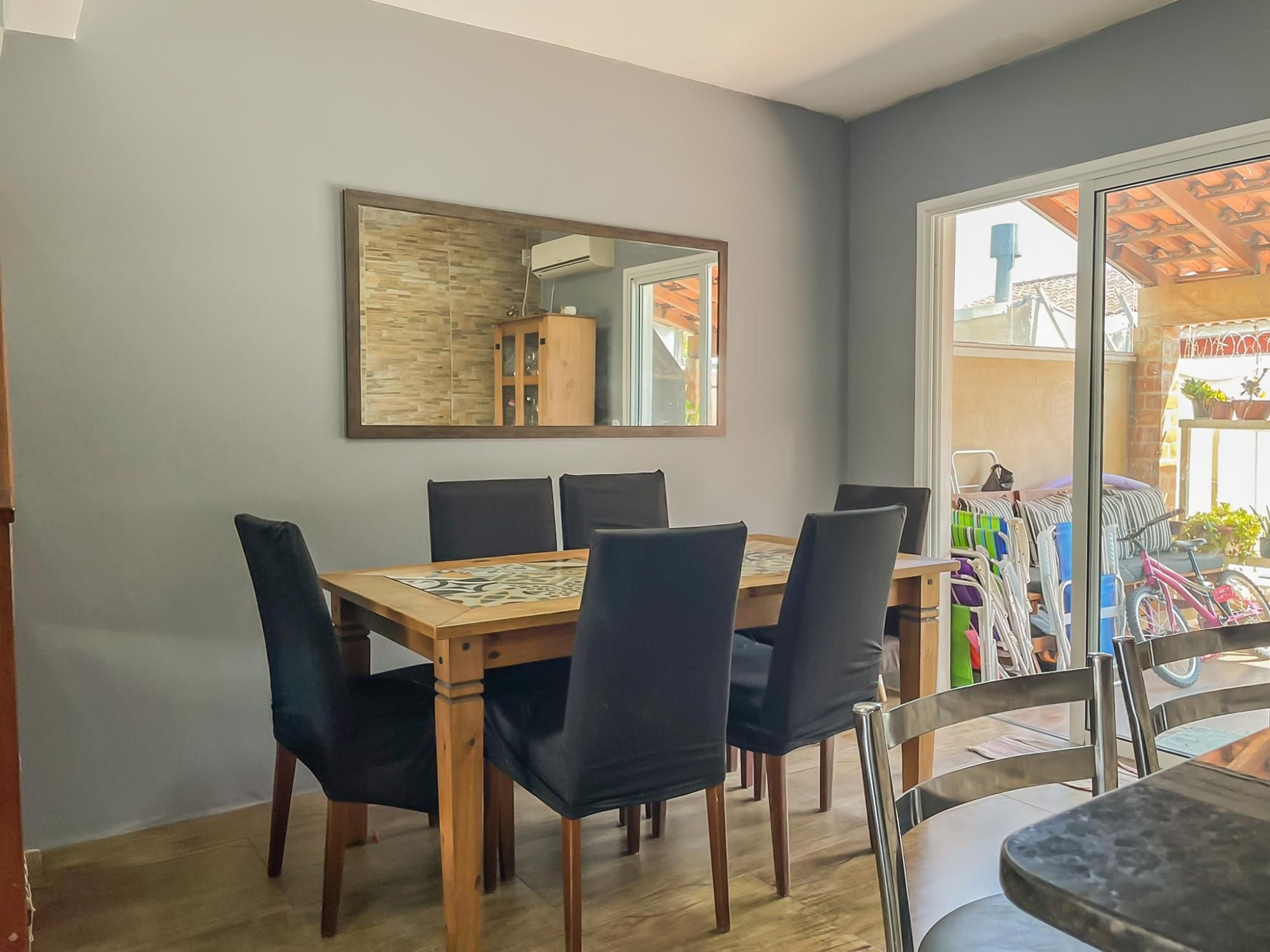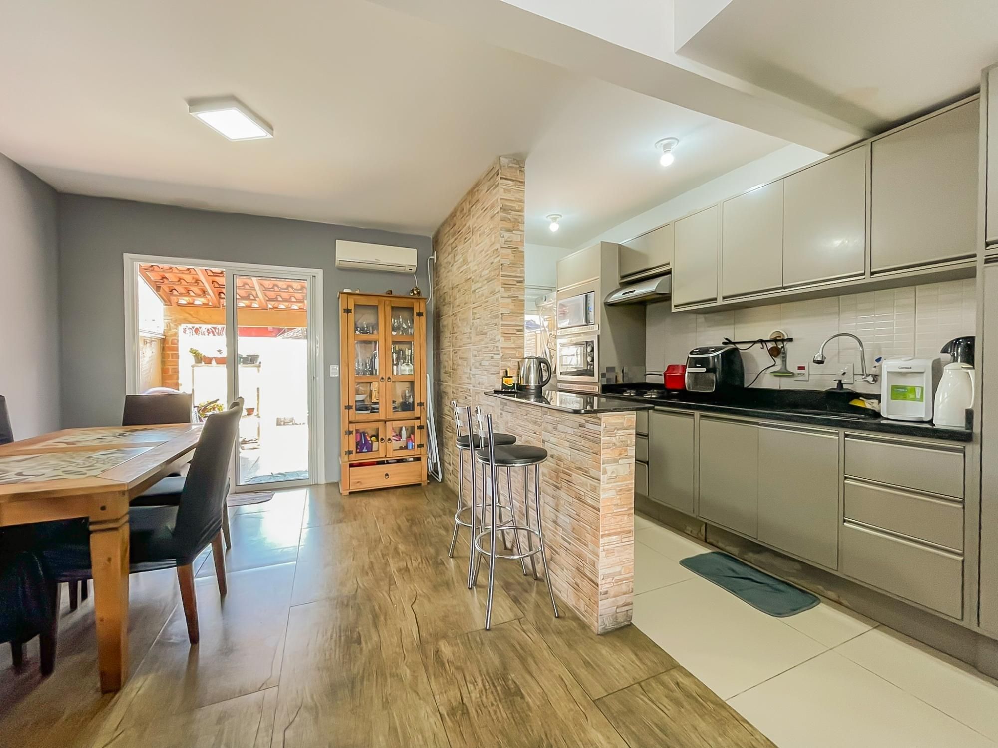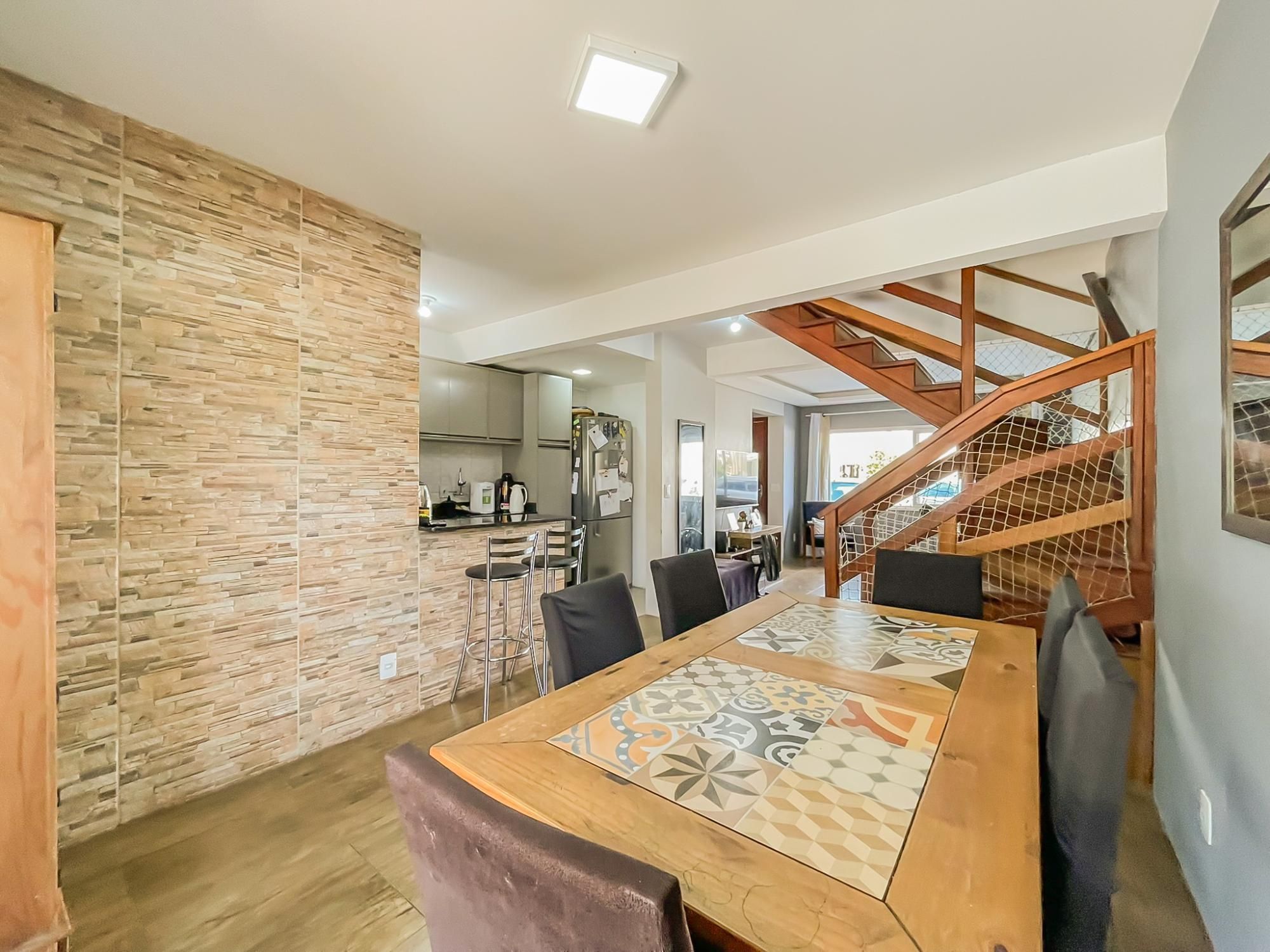 Este excelente sobrado de 124m² privativos combina funcionalidade e bem-estar em cada detalhe. No andar social, desfrute de um amplo living para 2 ambientes integrado a uma cozinha americana moderna com móveis sob medida. A área externa é um convite ao lazer, contando com varanda, churrasqueira e um pátio privativo com piscina, perfeito para momentos em família.