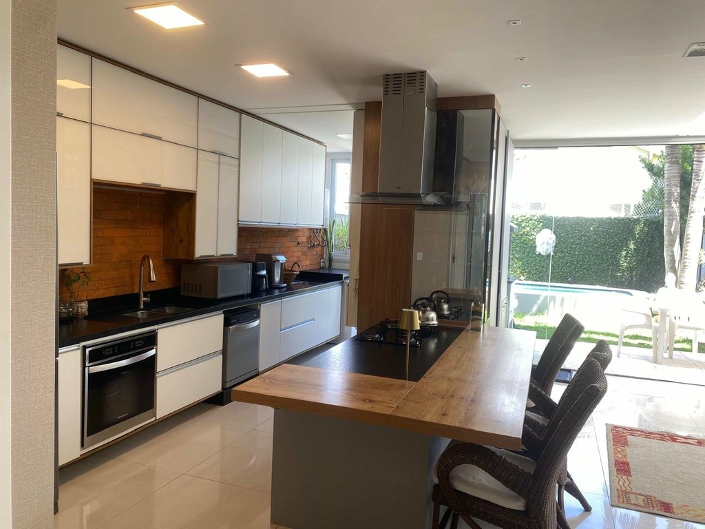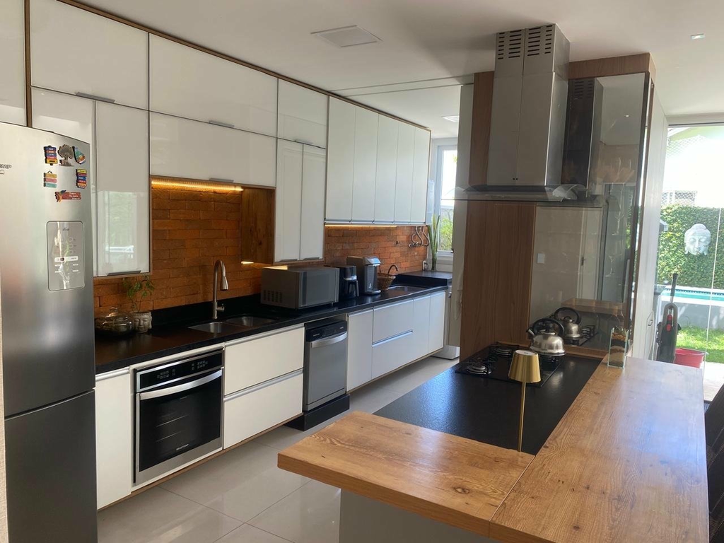 A residência apresenta excelente iluminação natural e conceito aberto, com ambientes integrados. Possui móveis planejados na cozinha, escritório, closet, corredores e banheiros. Destaque para a lareira e para os tetos de vidro em pontos estratégicos da casa, que valorizam ainda mais a entrada de luz natural.