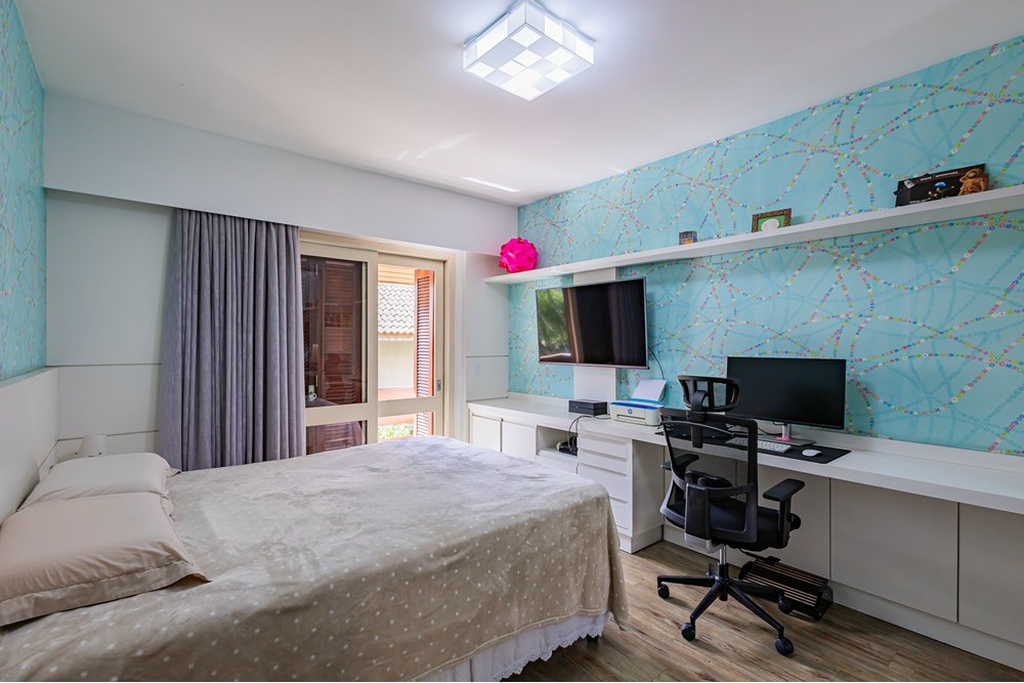 Atualmente, é utilizado pela família como escritório e área de treino, mas o ambiente também conta com banheiro e depósito, podendo ser facilmente adaptado para o que você desejar: