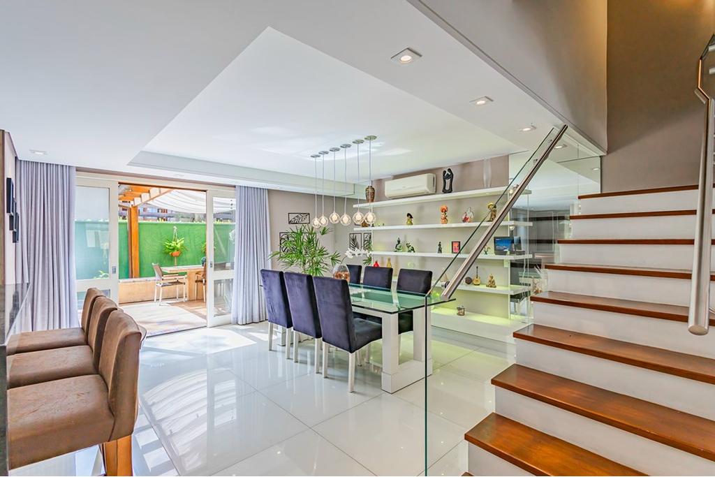 Ao entrar, você é recebido por um living para dois ambientes, em conceito aberto e com pé-direito duplo, proporcionando amplitude e luminosidade.