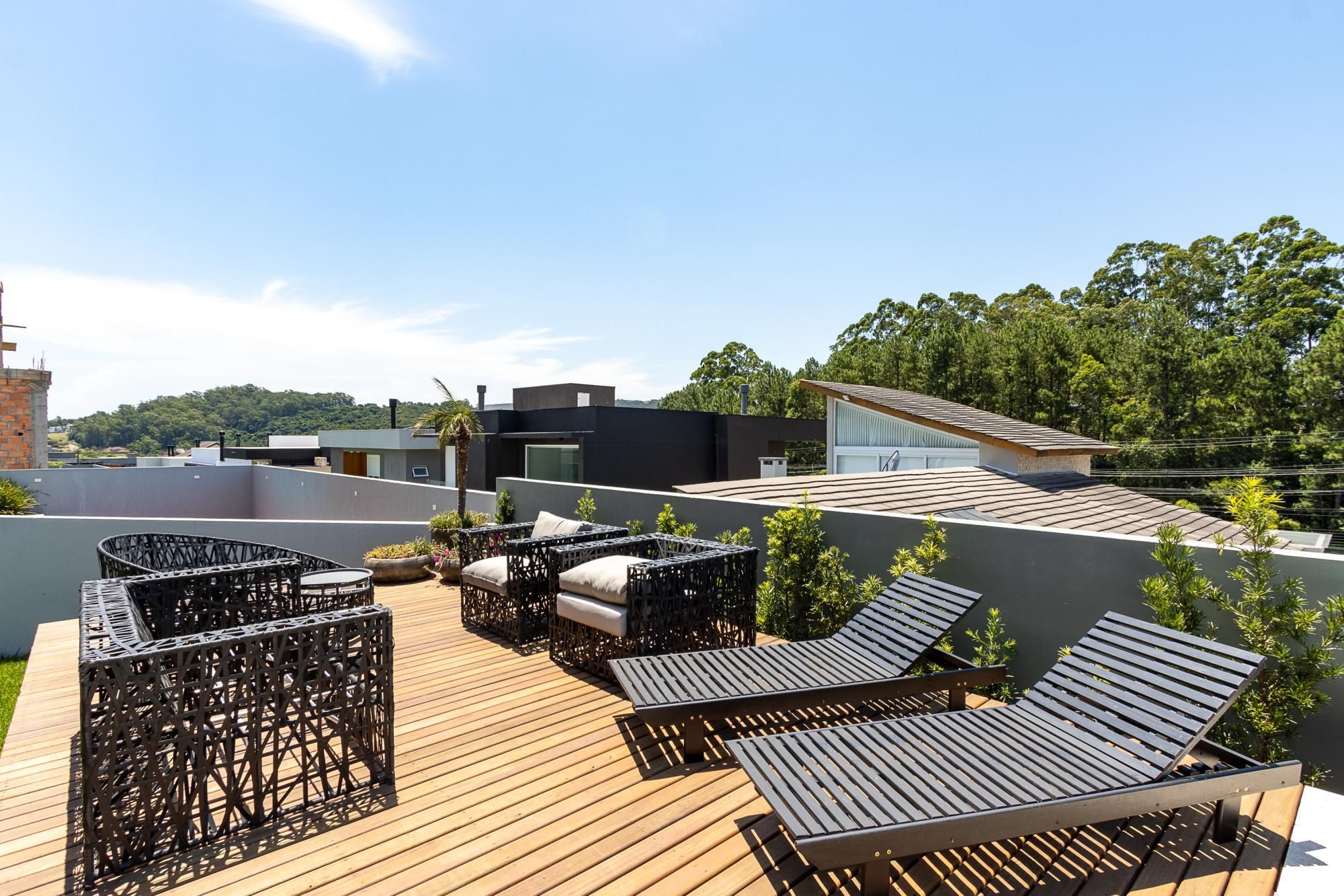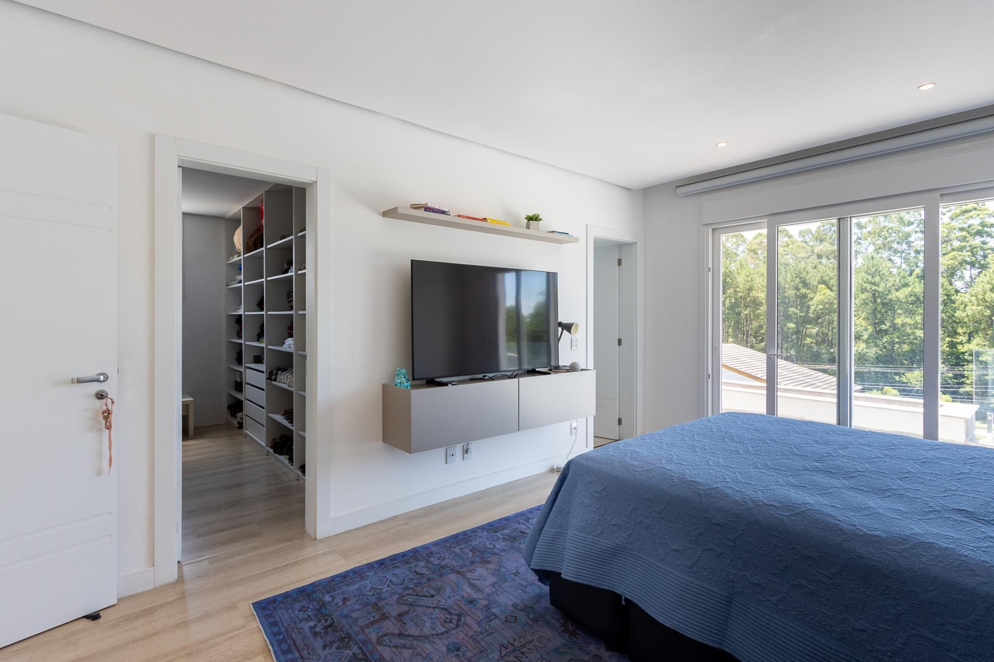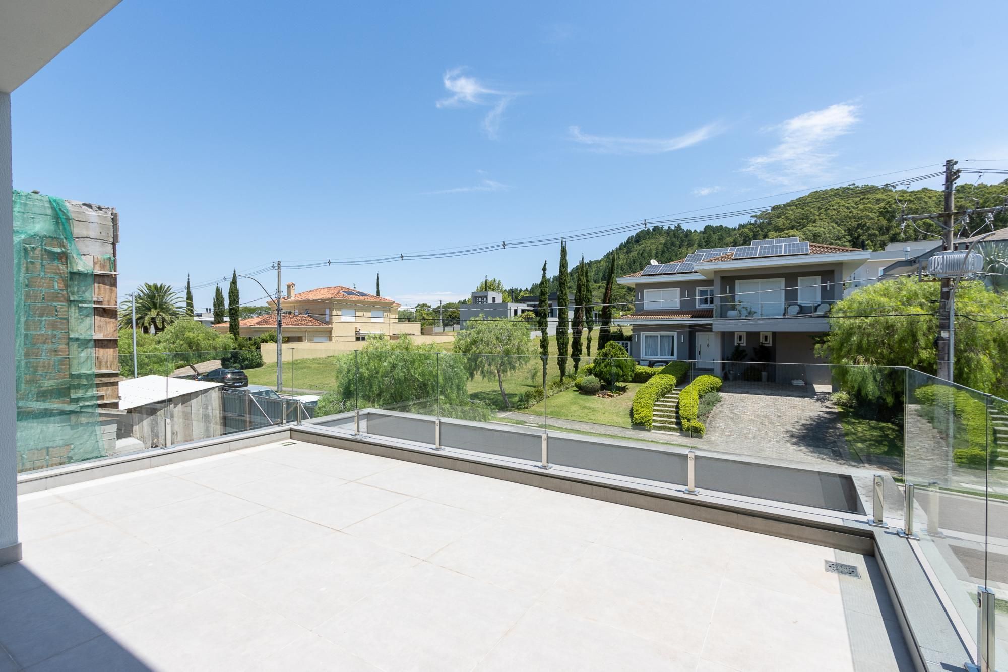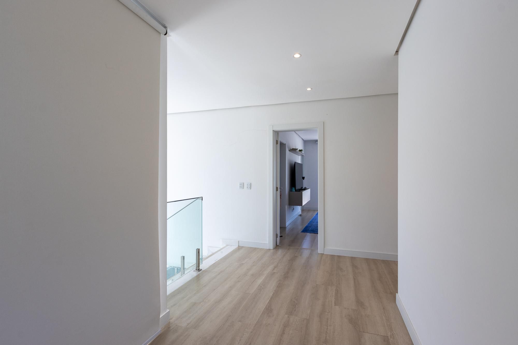 No pavimento superior, são 3 suítes espaçosas, incluindo suíte master com vista para a área de preservação, posição elevada em relação às casas vizinhas e total privacidade. Conta ainda com estar íntimo e sacada com vista privilegiada. Dormitórios amplos, bem ventilados e com excelente iluminação natural.