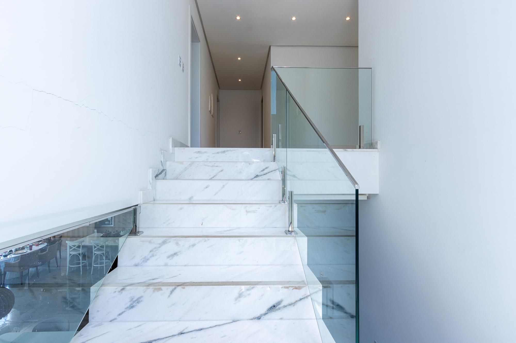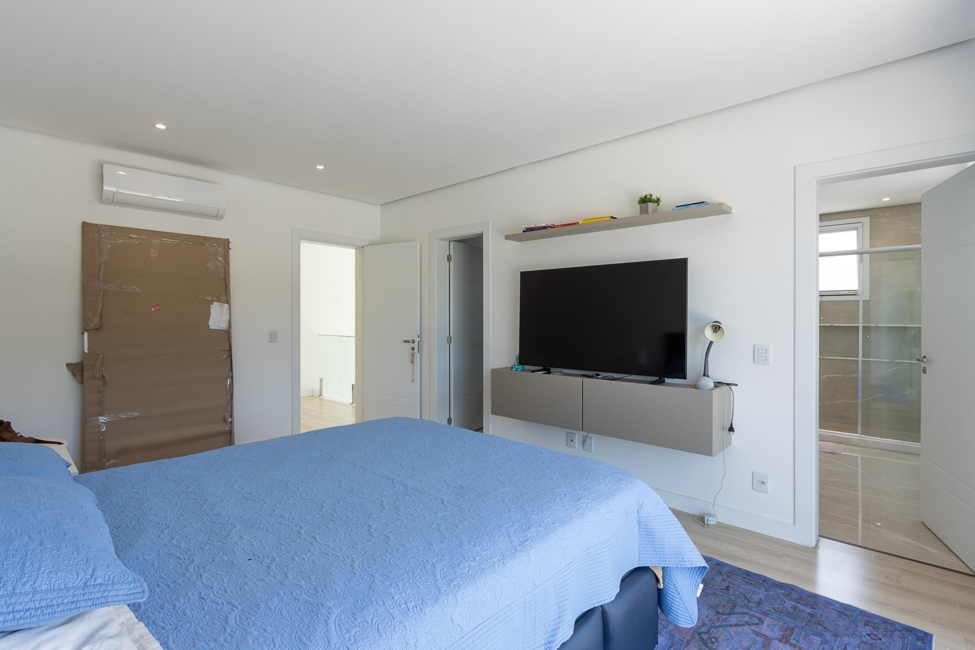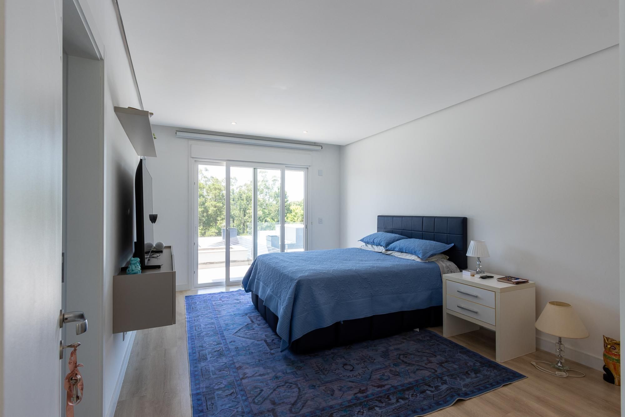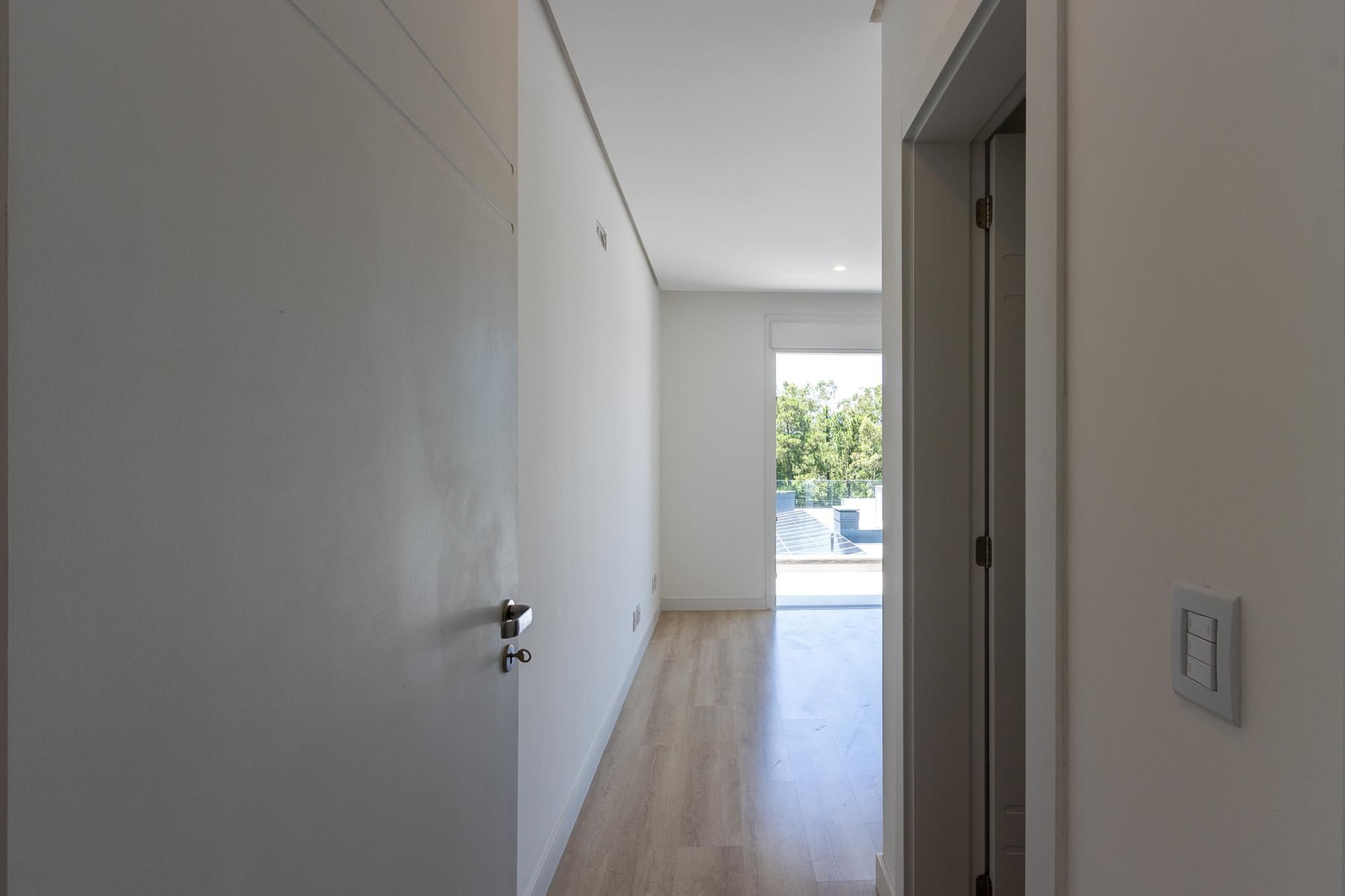 No pavimento superior, são 3 suítes espaçosas, incluindo suíte master com vista para a área de preservação, posição elevada em relação às casas vizinhas e total privacidade. Conta ainda com estar íntimo e sacada com vista privilegiada. Dormitórios amplos, bem ventilados e com excelente iluminação natural.