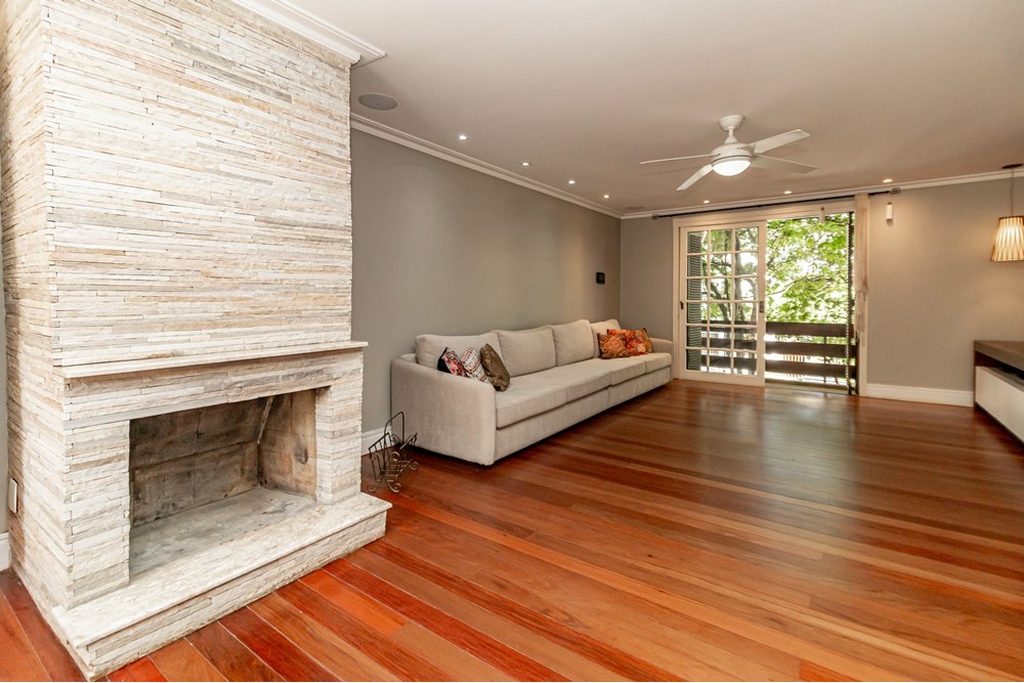 O living é amplo, iluminado e integrado, daqueles que convidam a desacelerar e curtir o inverno próximo a lareira.