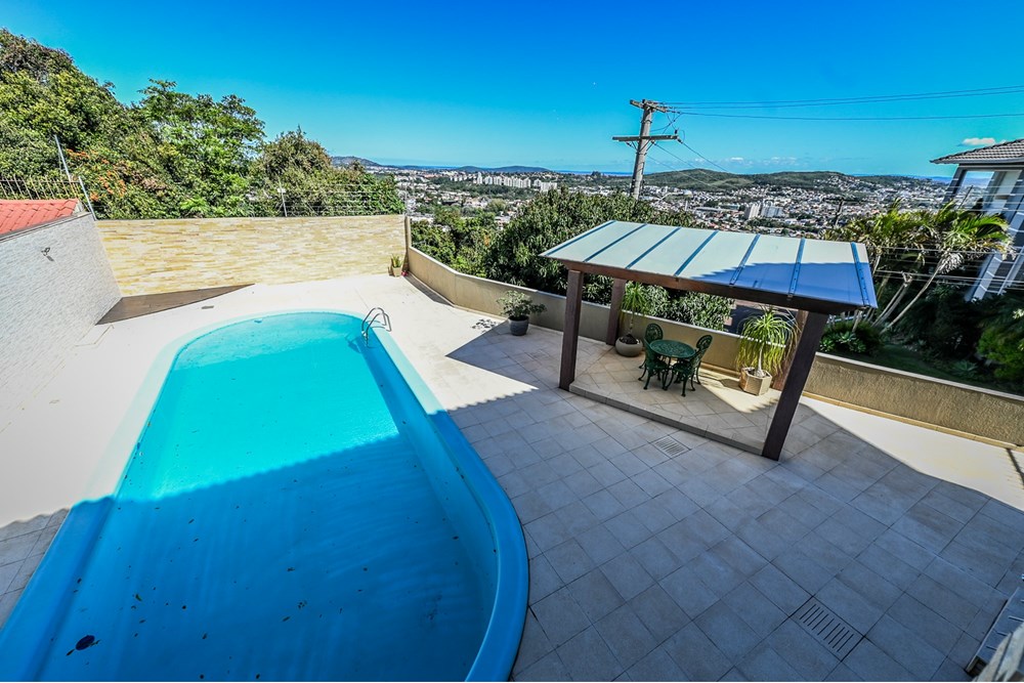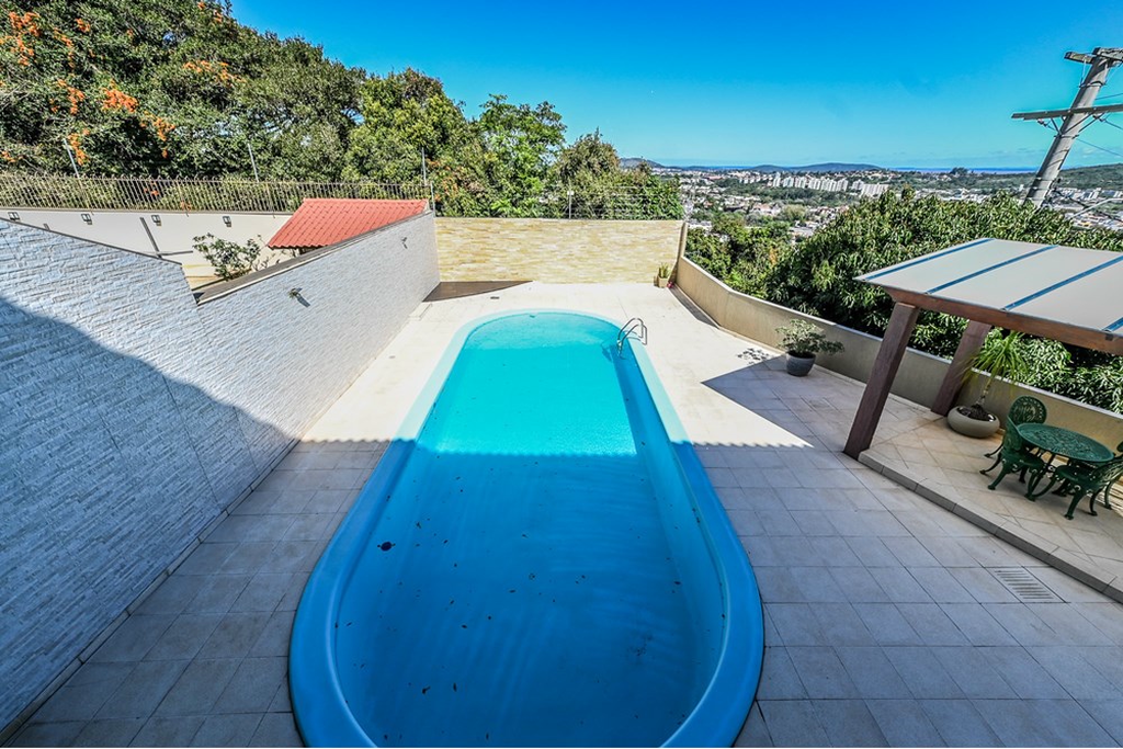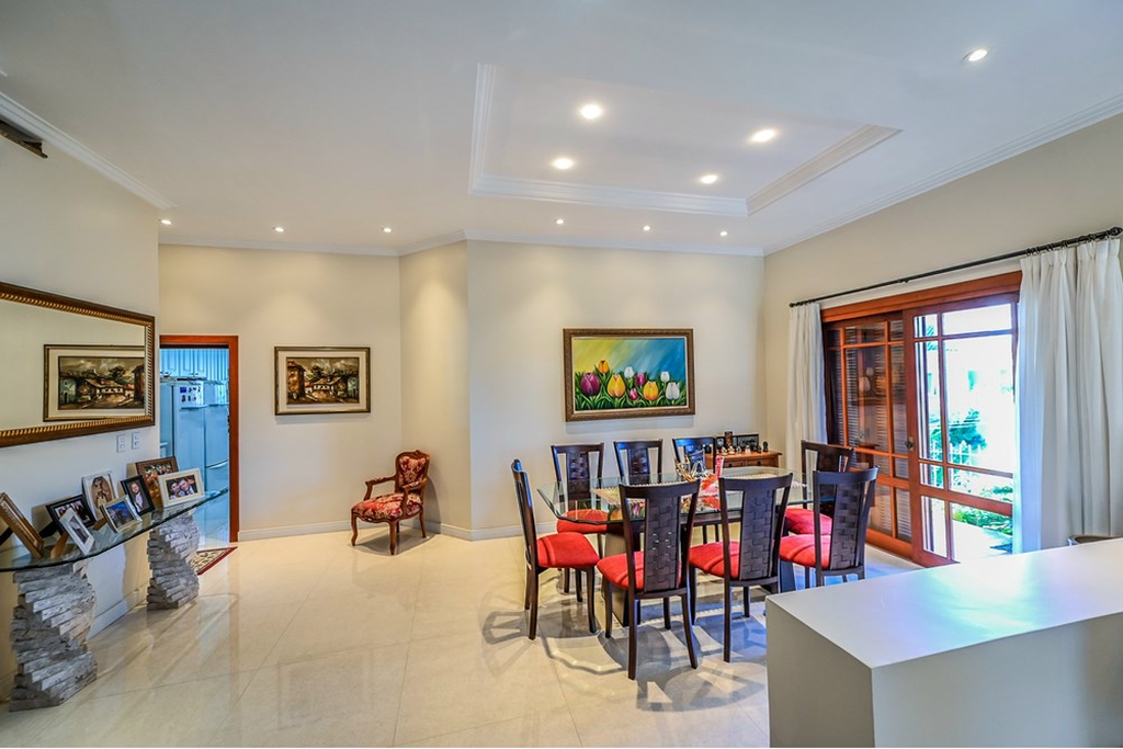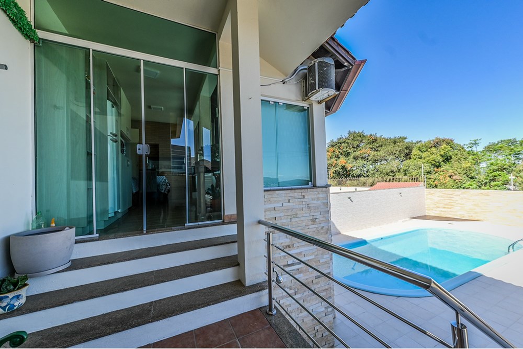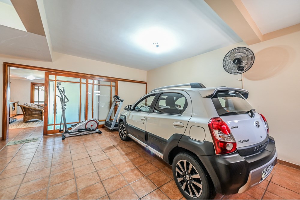 - Pátio com piscina e quiosque, garagem coberta para 2 carros e descoberta para mais 2.