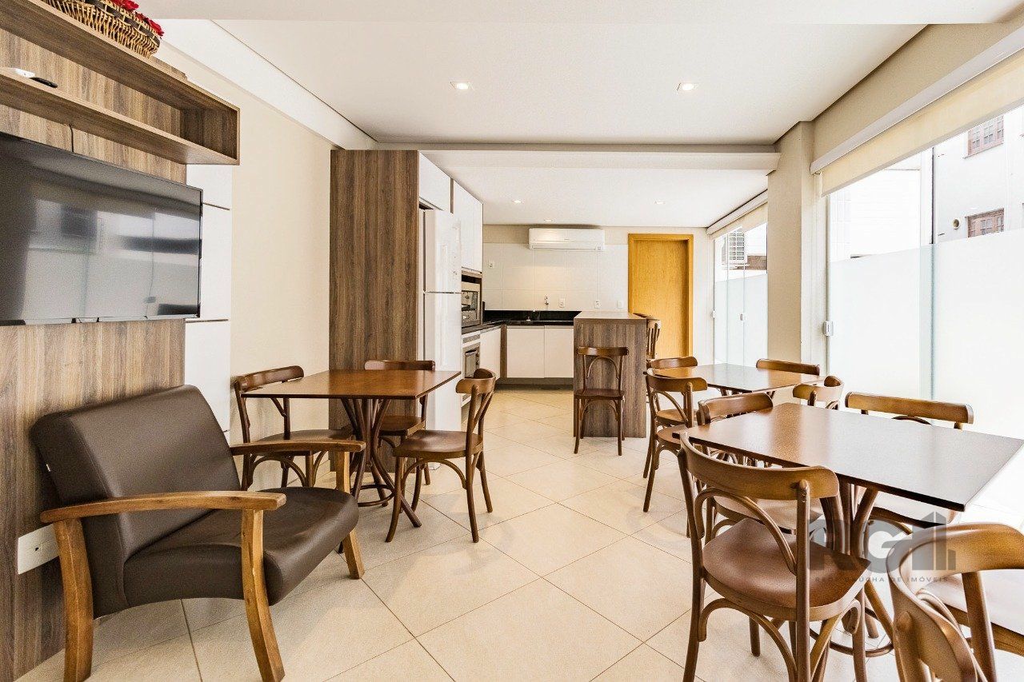 Cobertura de um dormitório, suíte , escritório com banheiro, salão de festa ,lateira semi mobiliada e três vagas de garagem mais depósito, no bairro São João em Porto Alegre.
